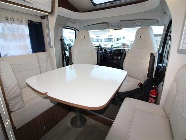 - télé avec antenne satellite automatique et lecteur DVD - chauffage gaz - climatisation cabine - grand salon en face a face pour plus d'espace - moustiquaire à toutes les fenêtres - stores occultant à toutes les fenêtres + pare brise - éclairage extérieure - grande soute transversal -