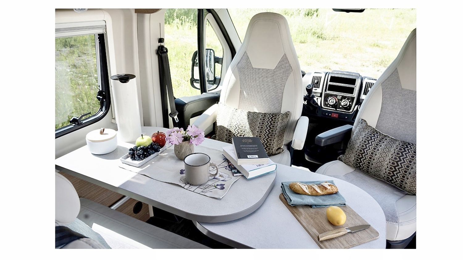 El interior es muy espacioso y su decoracion practica y funcional te cautivaran. Muy luminosa gracias a sus 3 clarabollas y su fantastica iliminacion led, todo pensado para tu maxima comodidad