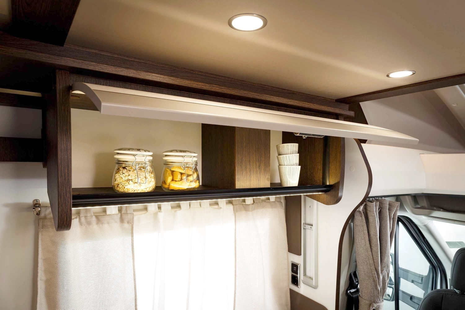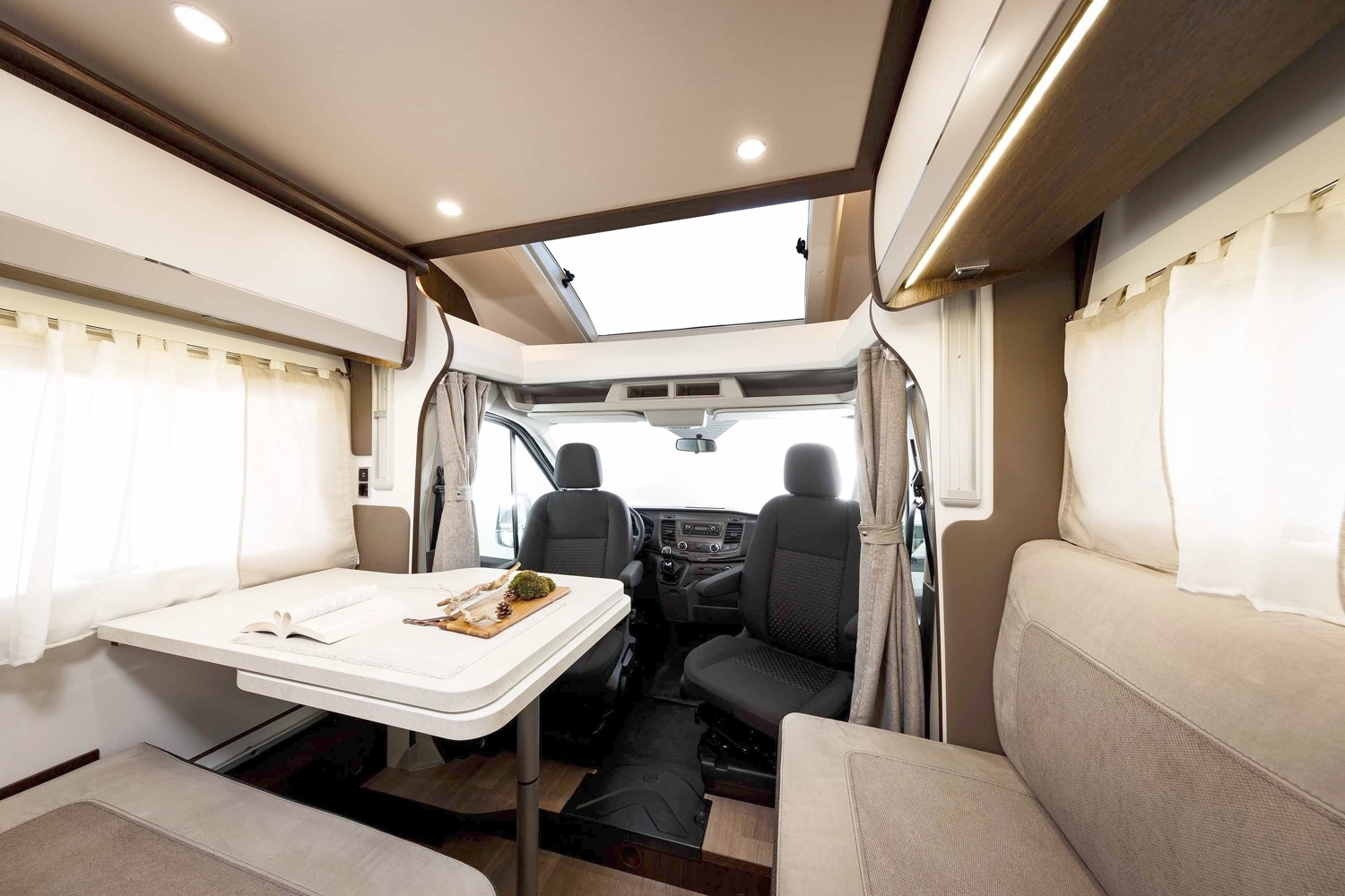 El interior es muy espacioso y su decoracion practica y funcional te cautivaran. Muy luminosa gracias a sus 5 clarabollas y su fantastica iliminacion led, todo pensado para tu maxima comodidad