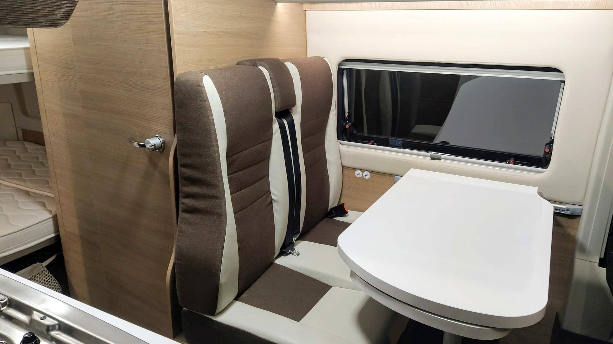 La vida en el interior es muy fácil y cómoda ya que cuentas con mesa con extensor, asientos delanteros giratorios, cocina con dos fuegos, fregadero, baño completo (WC, lavabo y ducha), nevera, dos camas dobles (se pueden montar y desmontar las mismas en base a vuestras necesidades), calefaccion Webasto, agua caliente, menaje completo, kit de limpieza, químicos de WC y cubre colchones.