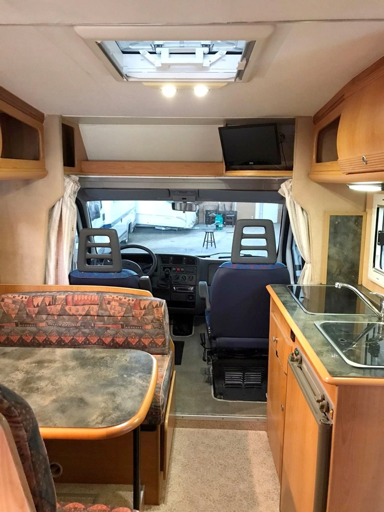 Autocaravana ideal para férias em família. A distribuição do espaço interior é amplo e muito confortável. É um veículo relativamente pequeno, tornando-se de fácil estacionamento e muito fácil de conduzir. Está equipada com painel solar, o que lhe permite ter uma boa autonimia de energia, com televisão . Tem ainda todos os acessórios necessário para cozinhar e comer como tachos, frigideiras, pratos, copos, chavenas, talheres, etc.
